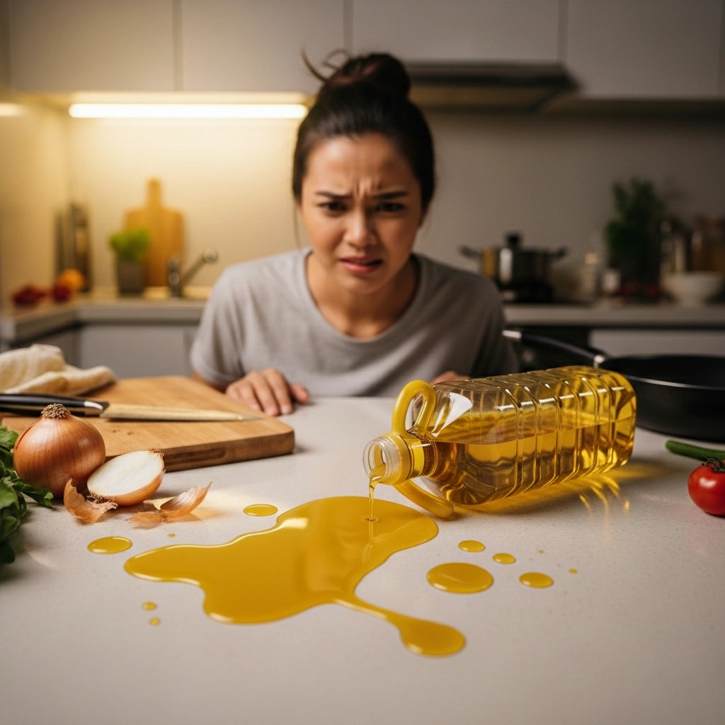 Setiap kali masak, minyak tumpah merata.
